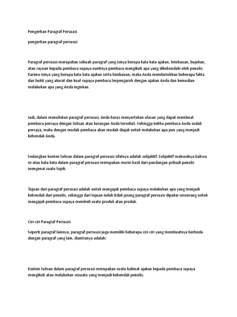 Dalam kehidupan sehari hari pasti kita menggunakan kalimat. Penggunaan bahasa pada kalimat persuasif harus menarik. Kalimat persuasif pengertian ciri paragraf syarat langkah contoh. Jadi paragraf persuasif adalah paragraf yang isinya menyatakan suatu ajakan bujukan atau himbauan terhadap sesuatu dengan harapan agar pembaca mau.