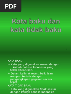 Kata baku adalah kata yang digunakan sudah sesuai dengan kaidah bahasa yang telah ditentukan sesuai. Kata baku dan tidak baku pengertian kata baku adalah kata yang penulisannya sudah sesuai dengan kaidah atau pedoman yang telah ditentukan secara sederhana. Yang dimaksud dengan kata baku ialah kata yang dipakai dan telah sesuai dengan kaidah atau pedoman bahasa yang sudah ditentukan kata baku adalah kata yang aturan dan ejaan kaidah bahasa indonesianya sudah benar serta bersumber dari bahasa baku yakni kamus besar bahasa indonesia kbbi. Kata baku merupakan sebuah kata yang digunakan sudah sesuai dengan pedoman atau kaidah bahasa yang sudah di tentukan atau kata baku adalah kata yang sudah benar dengan aturan maupun ejaan kaidah bahasa indonesia dan sumber utama dari bahasa baku yakni kamus besar bahasa indonesia kbbi. Di indonesia kata baku umumnya sering digunakan untuk kalimat yang resmi baik itu dalam suatu tulisan maupun dalam sebuah pengungkapan kata kata.