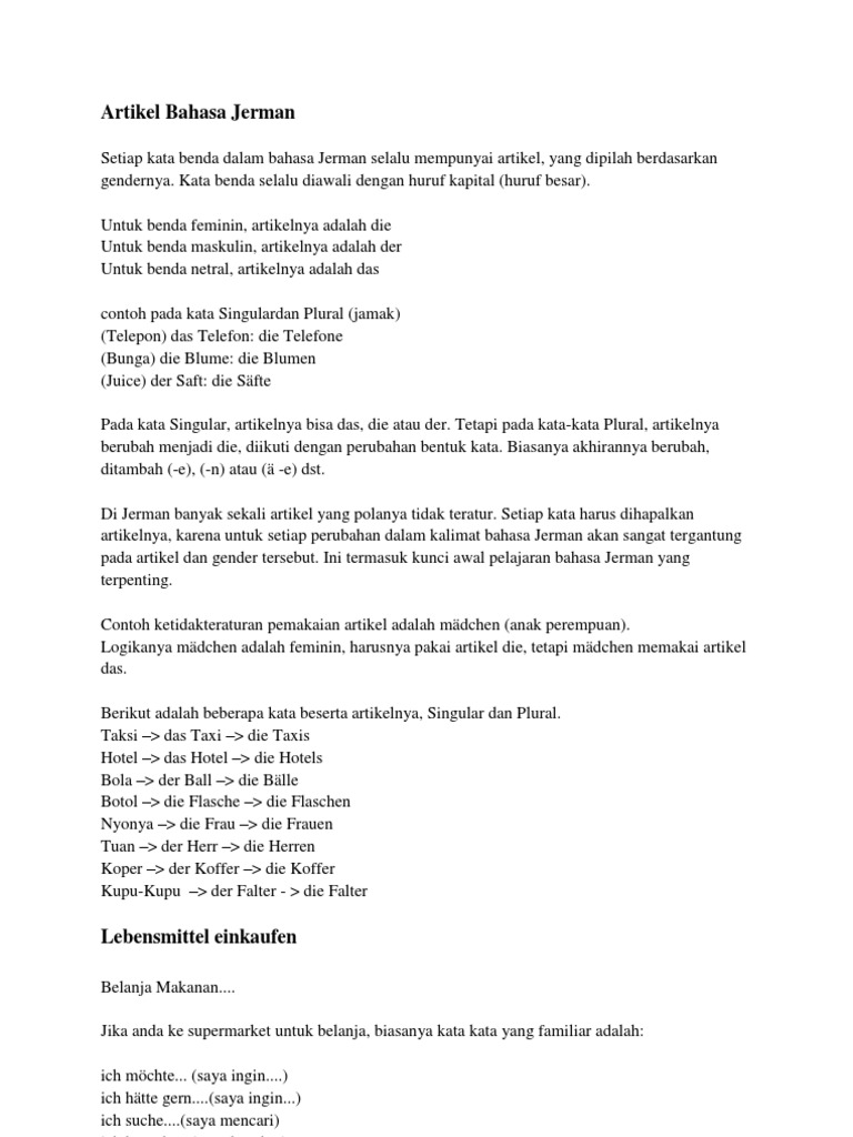 Kata Benda Bahasa Jerman Dan Artikelnya