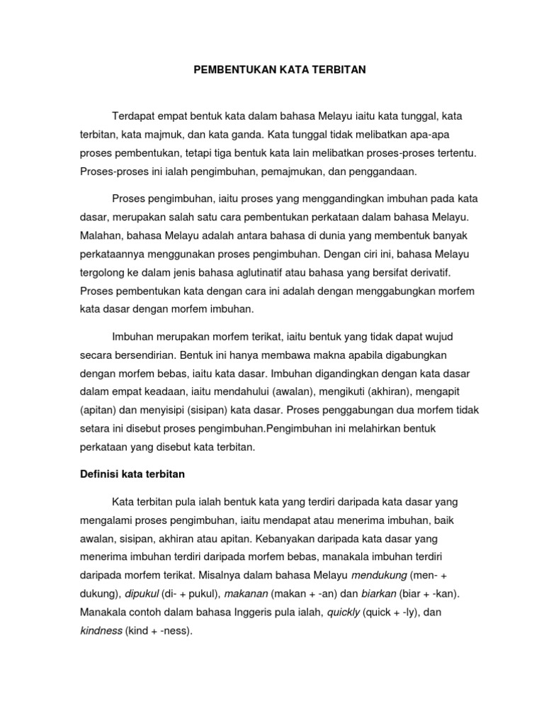Kata Dasar Yang Mendapat Imbuhan Awalan Sisipan Dan Akhiran Disebut Kata