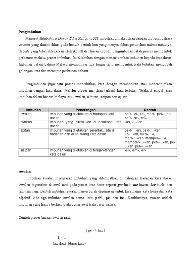 Kata dasar yang mendapat imbuhan awalan sisipan dan akhiran disebut kata. Apabila awalan ber digabungkan pada kata dasar yang suku kata pertamanya berakhir dengan huruf er hurf r dalam ber tidak digugurkan. Kata kata yang mengandung imbuhan awalan. Bentuk kata yang mengandungi kata dasar yang mendapat atau menerima baik awalan sisipan akhiran atau apitan imbuhan imbuhan ialah bentuk morfem yang tidak boleh hadir bersendirian dalam ayat dan harus diimbuhkan pada bentuk yang lain yang merupakan kata dasar. Kata kata yang mengandung awalan imbuhan.