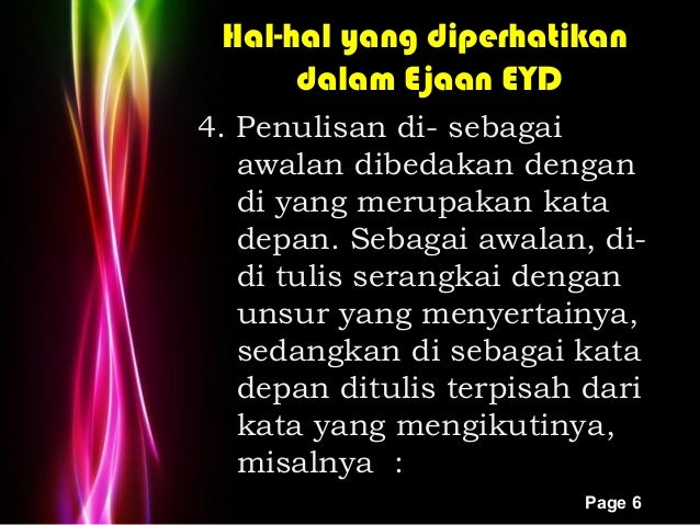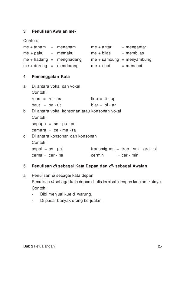 Sementara kata di yang merupakan imbuhan akan ditulis secara serangkai. Fungsi kata di sebagai kata depan akan ditulis secara terpisah. Dalam penulisan kata depan di ke dan dari kata ganti ku kau ku mu dan nya dan partikel acapkali kita dibingungkan dengan mana yang harus ditulis serangkai dengan kata yang mengikuti atau yang. Kata depan preposisi merupakan kata secara sintaksis tata atau susunan kalimat terletak tepat didepan kata benda sifat atau keterangan.