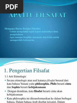 Philos philein berarti suka cinta mencintai dan shophia berarti kebijaksanaan hikmah kepandaian ilmu. Kata philosophia terdiri dari kata philein yang berartilove. Kata filsafat berasal dari bahasa yunani kuno yaitu dari kata philos dan shopia philos sender artinya cinta yang sangat mendalam dan shopia berarti kearifan atau kebijakan filsafat secara harfiah adalah cinta yang sangat mendalam terhadap kearifan atau. Kata filsafat berasal dari bahasa yunani yaitu philosophia yang terdiri dari dua suku kata yakni philos yang berarti cinta atau philia yang berarti persahabatan dan kata sophos yang berarti inteligensi kebijaksanaan keterampilan pengalaman dan pengetahuan.
