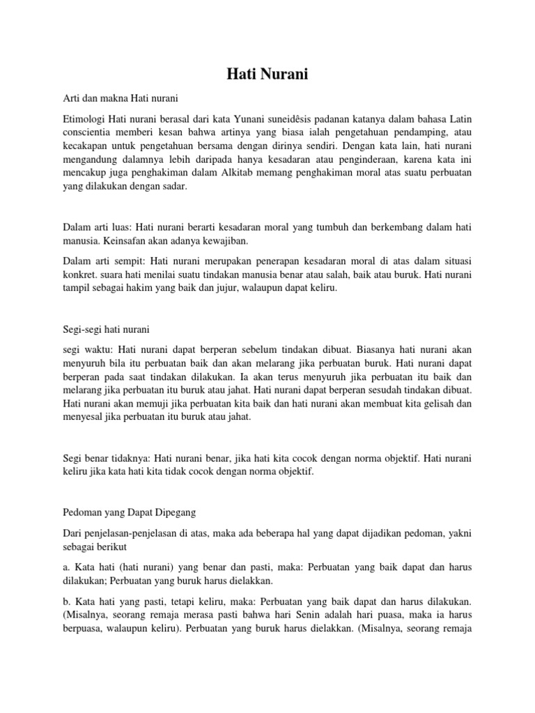 Pedoman yang dapat dipegang dari penjelasan penjelasan di atas maka ada beberapa hal yang dapat dijadikan pedoman yakni sebagai berikut a. Sekeras apapun kamu berusaha terkadang hasil yang keluar nggak seperti yang diharapkan. Kemudian setelah saya tanyakan banyak pula mengatakan bahwa hal itu merupakan budaya ya memang harusnya demikian kata mereka. Hati nurani adalah kemampuan untuk melihat diri sendiri dan memberikan penilaian tentang diri sendiri memberikan kesaksian tentang diri sendiri.