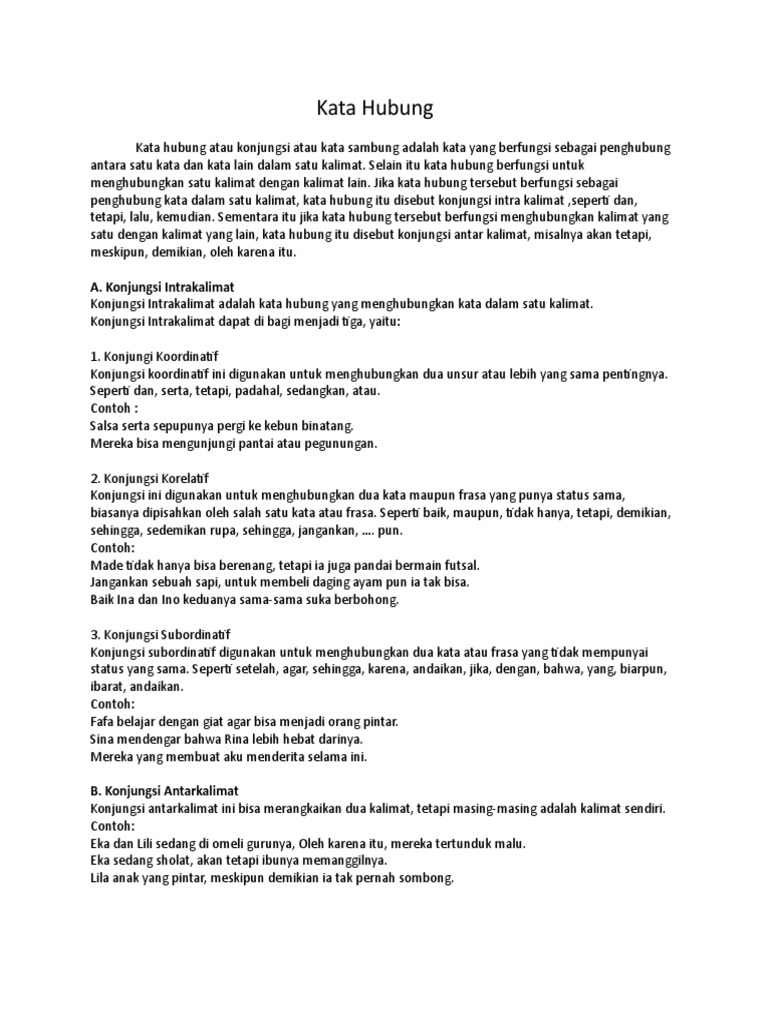 Kata hubung intrakalimat dan antarkalimat. Perlu anda ketahui bahwa konjungsi terbagi menjadi dua jenis yaitu konjungsi antarkalimat dan konjungsi intrakalimat yang mana akan di bahas blog belajar kali ini. Konjungsi kata penghubung adalah kata tugas yang fungsinya menghubungkan antarklausa antarkalimat dan antarparagraf. Kata penghubung atau konjungsi merupakan kata yang digunakan untuk menghubungkan antar kata dalam sebuah kalimat atau antar kalimat dalam sebuah paragraf. Arman saputra sekiranya 1.